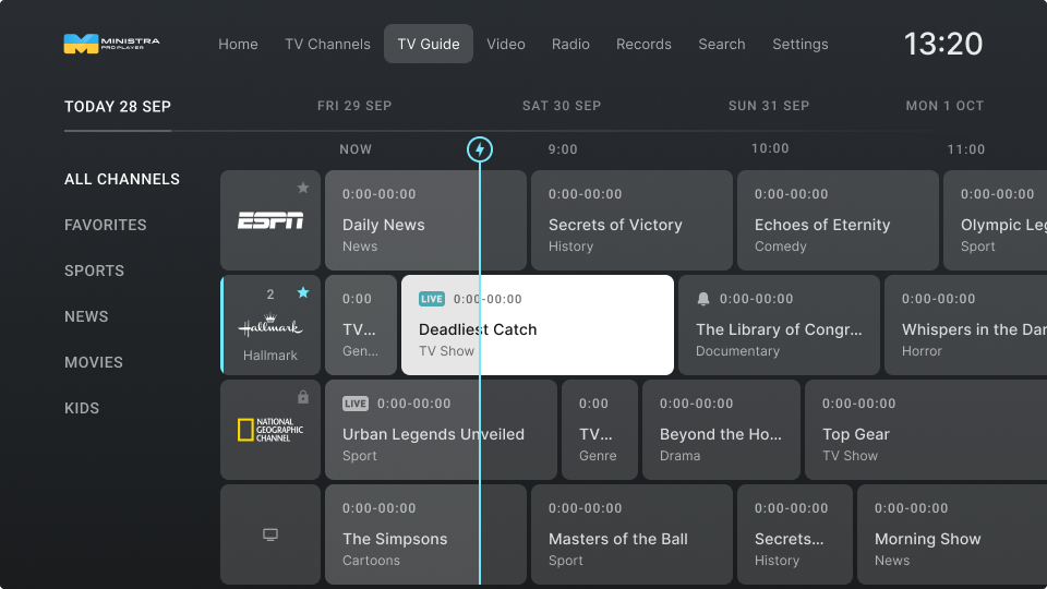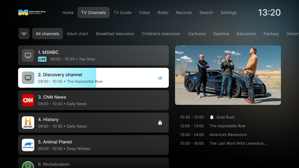 You can choose from the following TV Channels templates to use in your application: