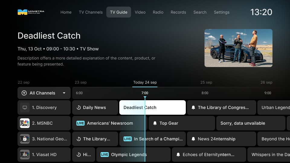 The EPG for the selected channel